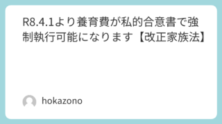 家族法の改正 R8.4.1より養育費が私的合意書で強制執行可能になります【改正家族法】 改正家族法により、さまざまなことが変わっています。財産分与が2年⇒5年に延長されたのもその1つです。 2026.03.10 家族法の改正