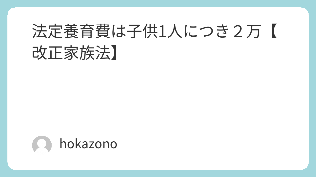 法定養育費は暫定的な処置という位置づけで、改めて養育費を元夫婦で取り決めるまでのものとなっています。